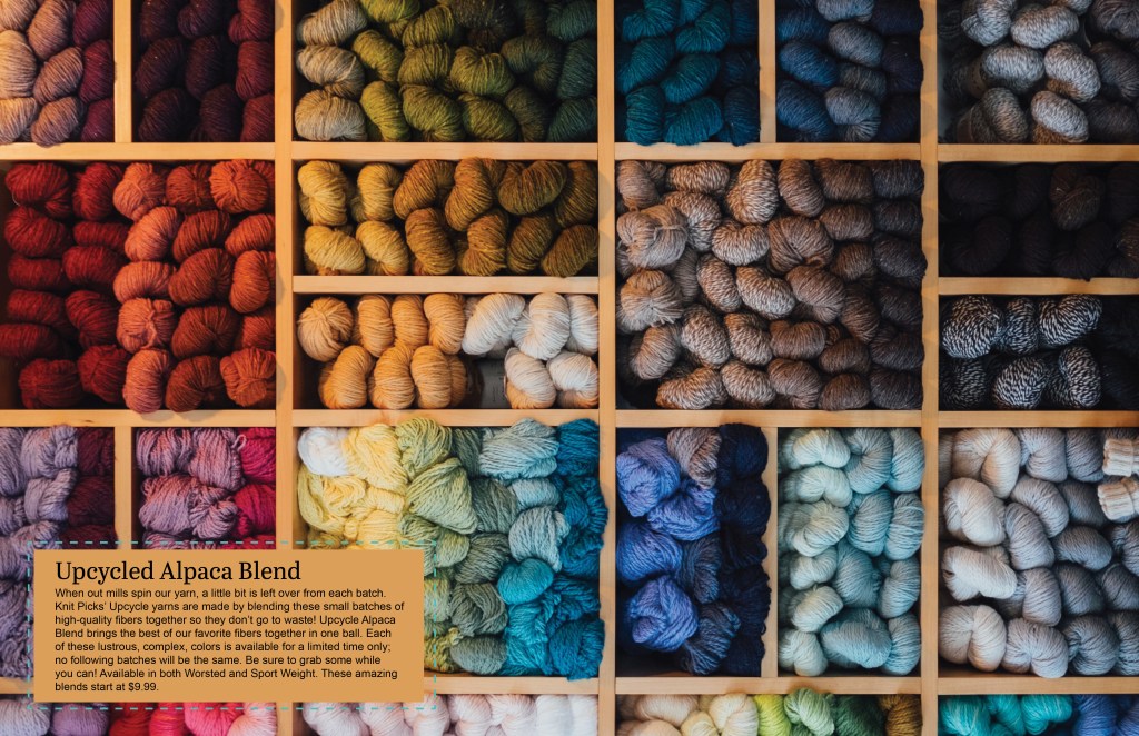 This mailer catalog is meant to showcase product and technique to the Knit Picks target audience.